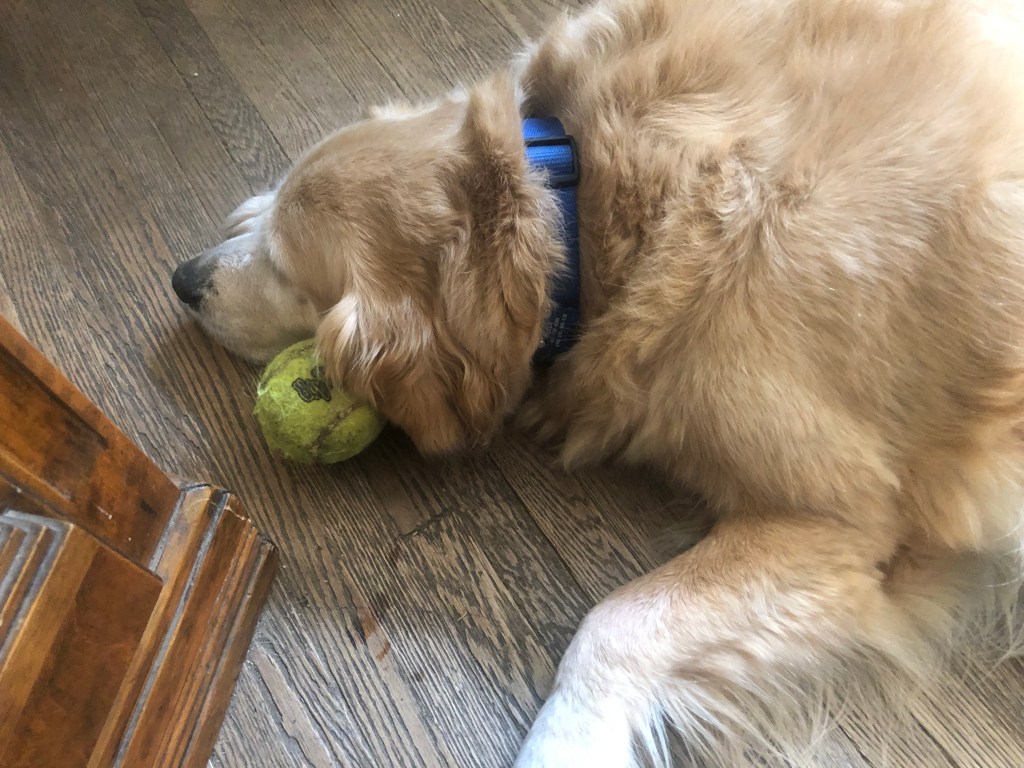 And when you are tired of squeaking it your tennis ball makes a great pillow. ~ Belle Pup