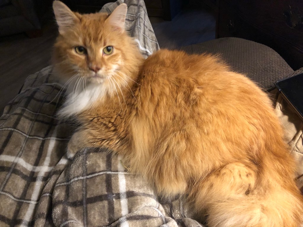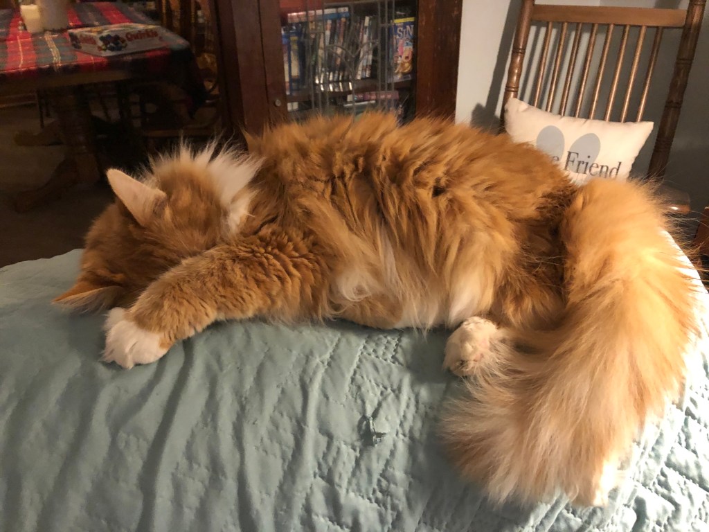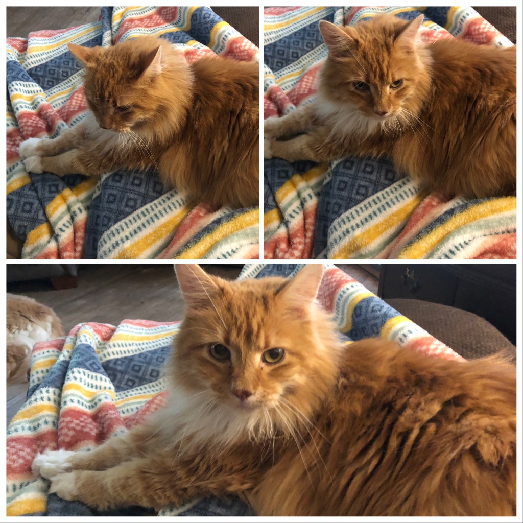 Hmm what to do today… it’s hard to choose. In the meantime I think I’ll just stay here and cuddle for awhile with My Margret. ~ Linus Kitty