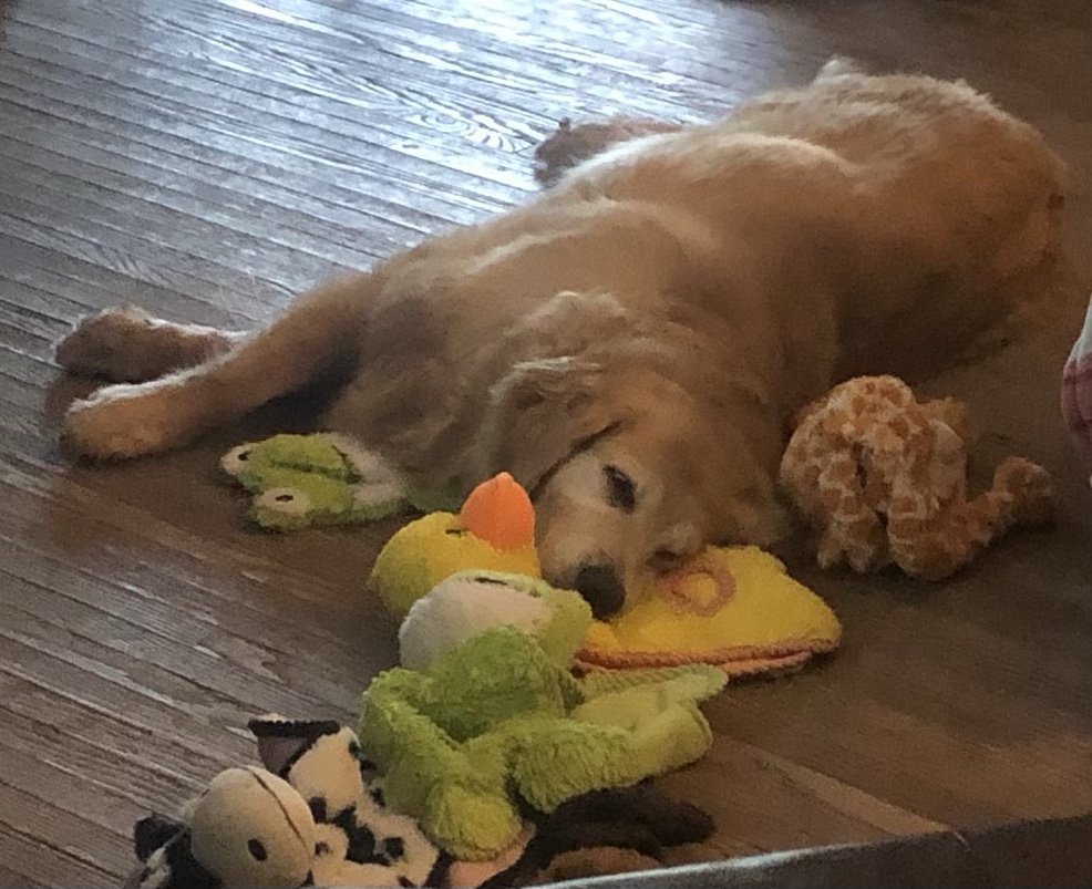 What do you do when the stuffies are in your way and won’t move? Use them for a pillow of course! ~ Belle Pup