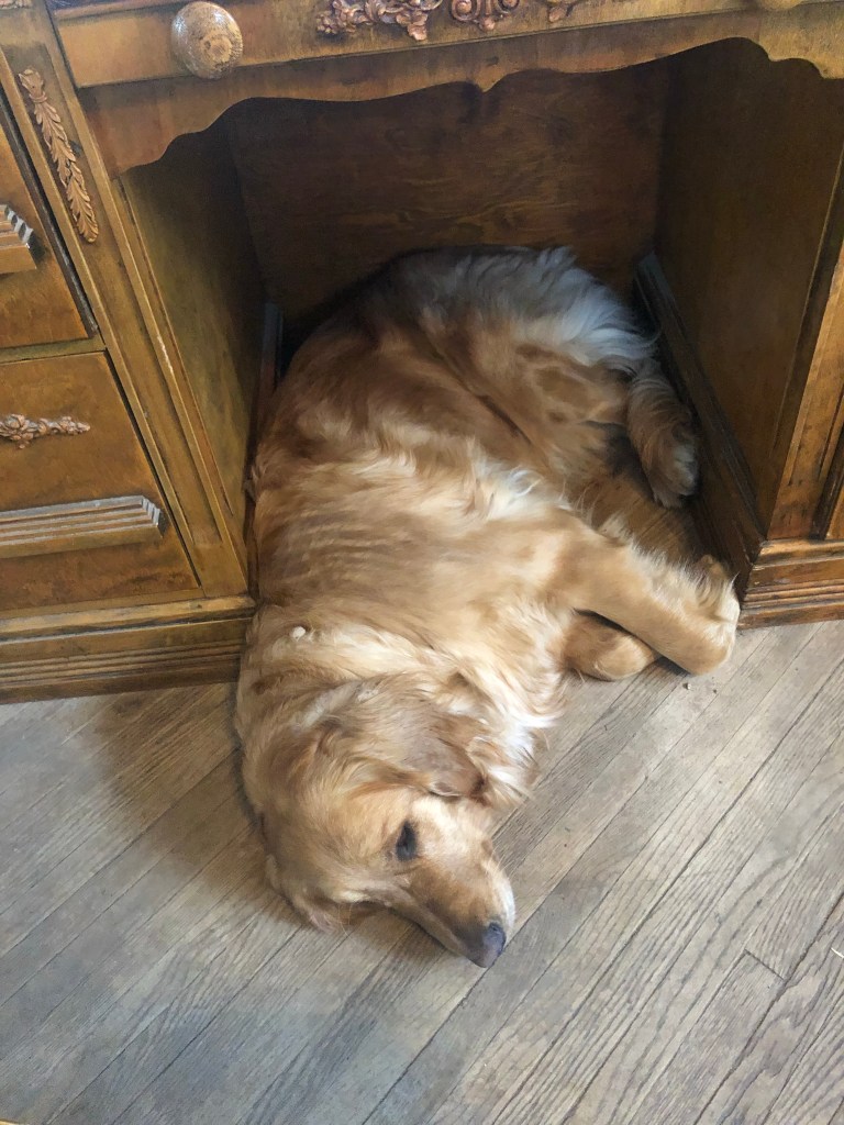 I don’t know what you mean, I fit under the desk just fine. ~ Bea Pup