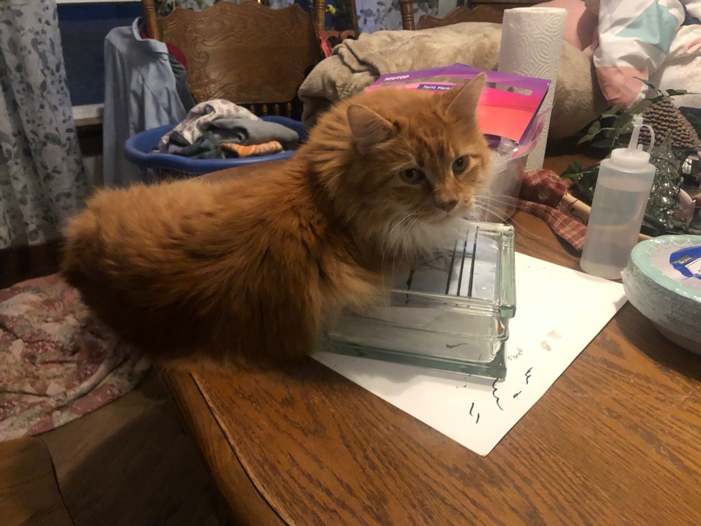 What, I’m just keeping it safe while the paint dries. ~ Linus Kitty