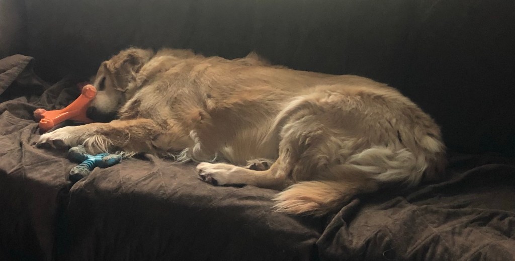 Do you remember the time when you were in such a sound sleep that your snoring drowned out the tv and you didn’t realize your chew toy became a pillow for your nose? Zzzz ~ Belle Pup