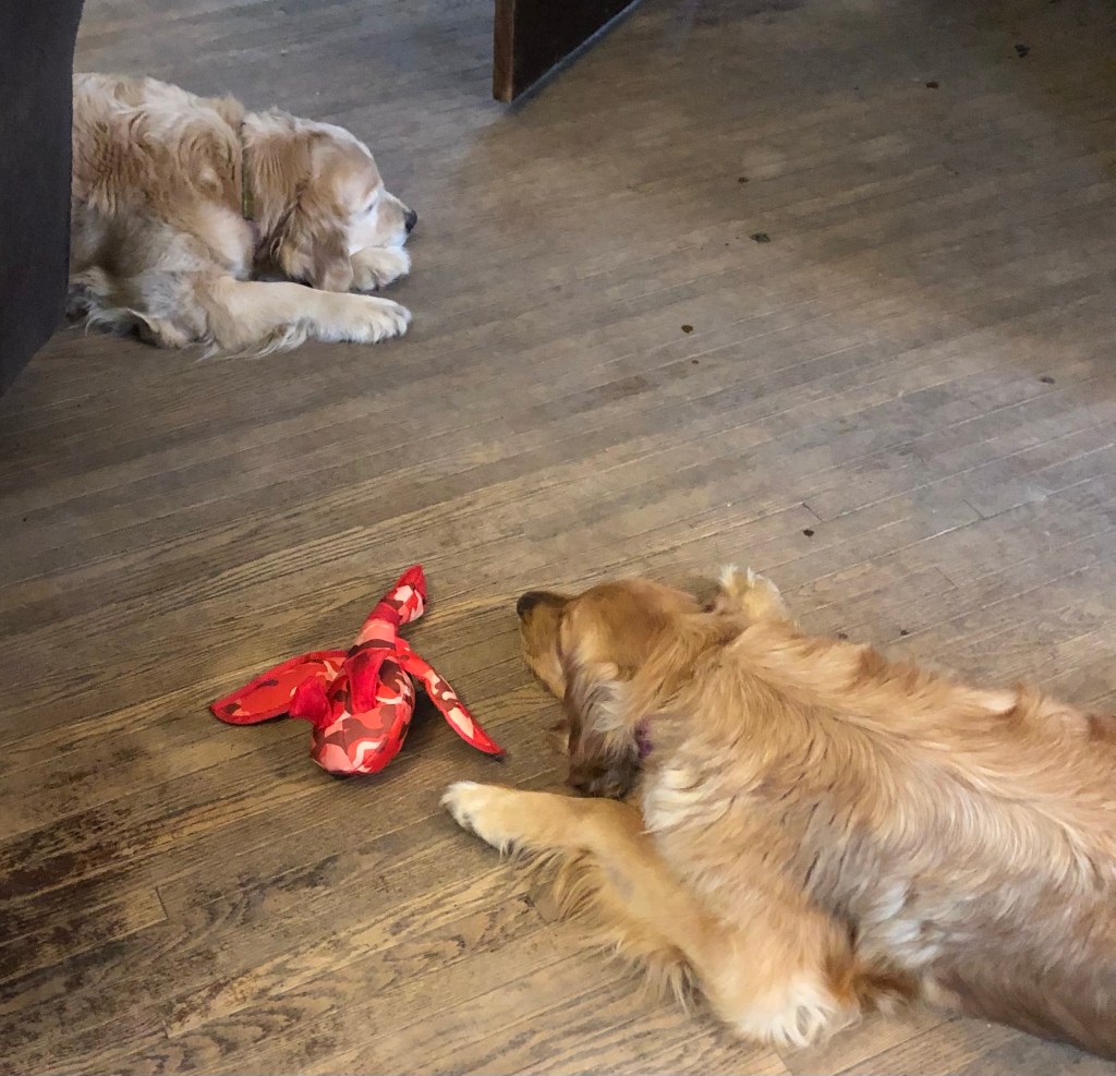 Happiness is a new tennis ball. Thank you Sandy, you made our day! ~ Belle and Bea Pups