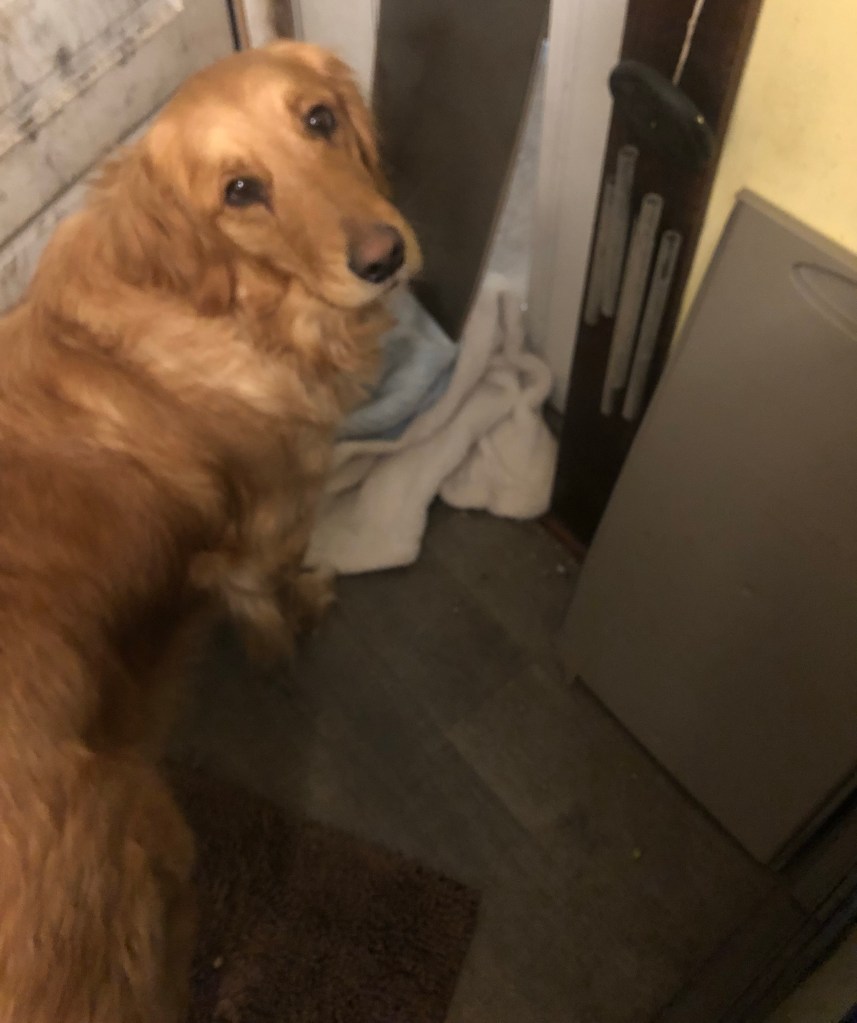 Your blanket? That’s not a blanket caught in the dog door. I think you are seeing things. ~ Bea Pup