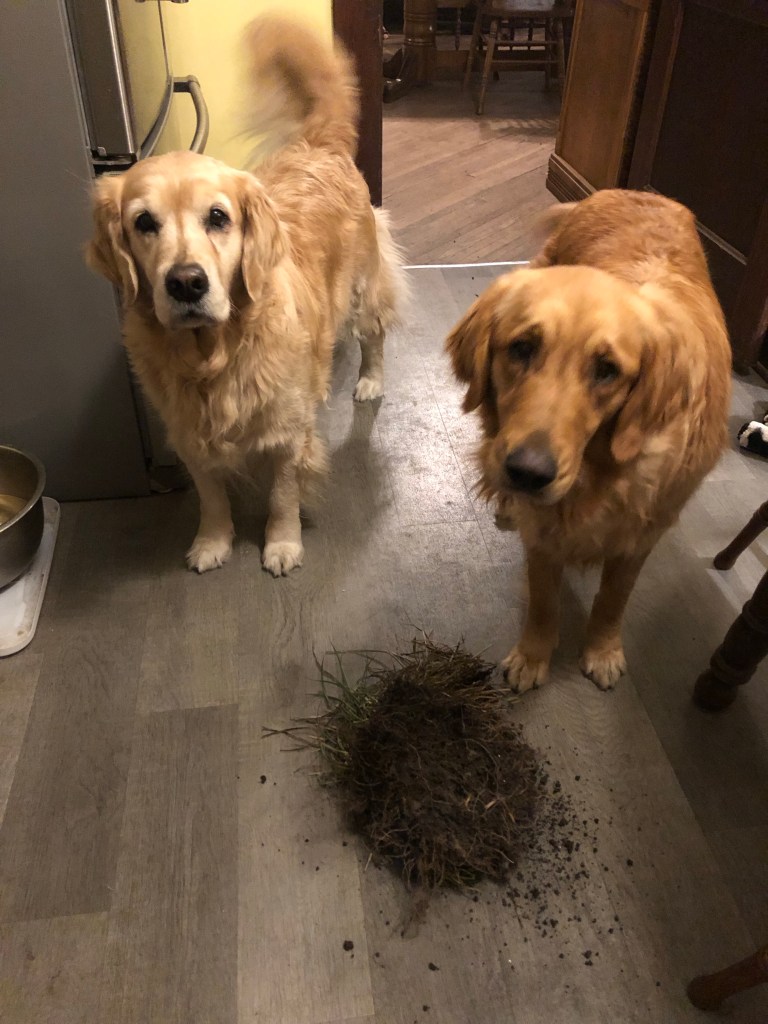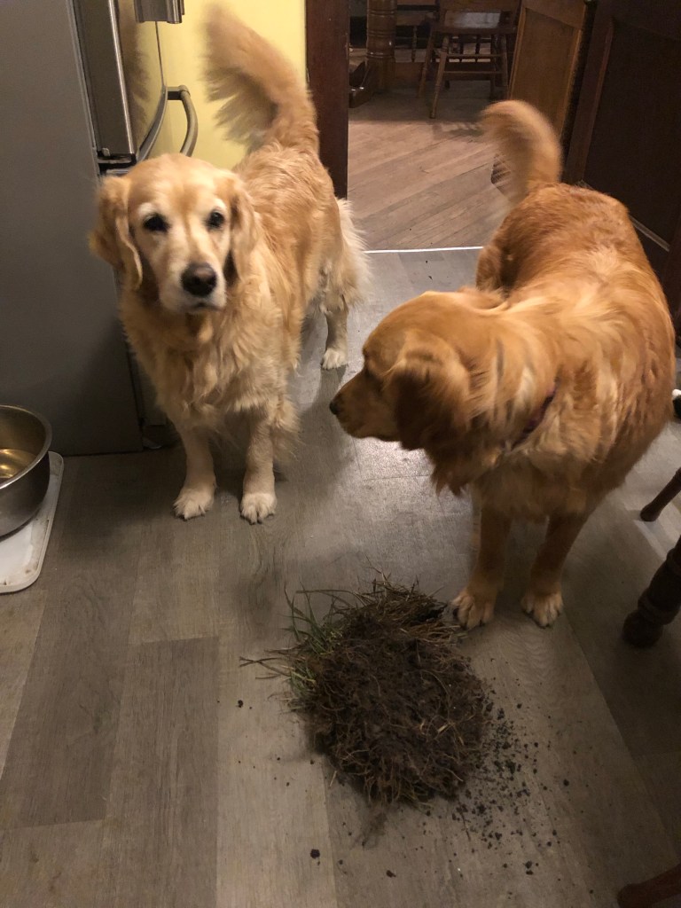 No, we don’t know anything about this (very heavy I can’t believe I pulled it then made it into the house without it falling apart) grass and dirt clod. Do we Bessie. ~ Bea and Bessie Pups