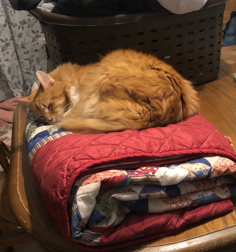 One of my important jobs is making sure blankets don’t start floating towards the ceiling. This one isn’t going anywhere! ~ Linus Kitty