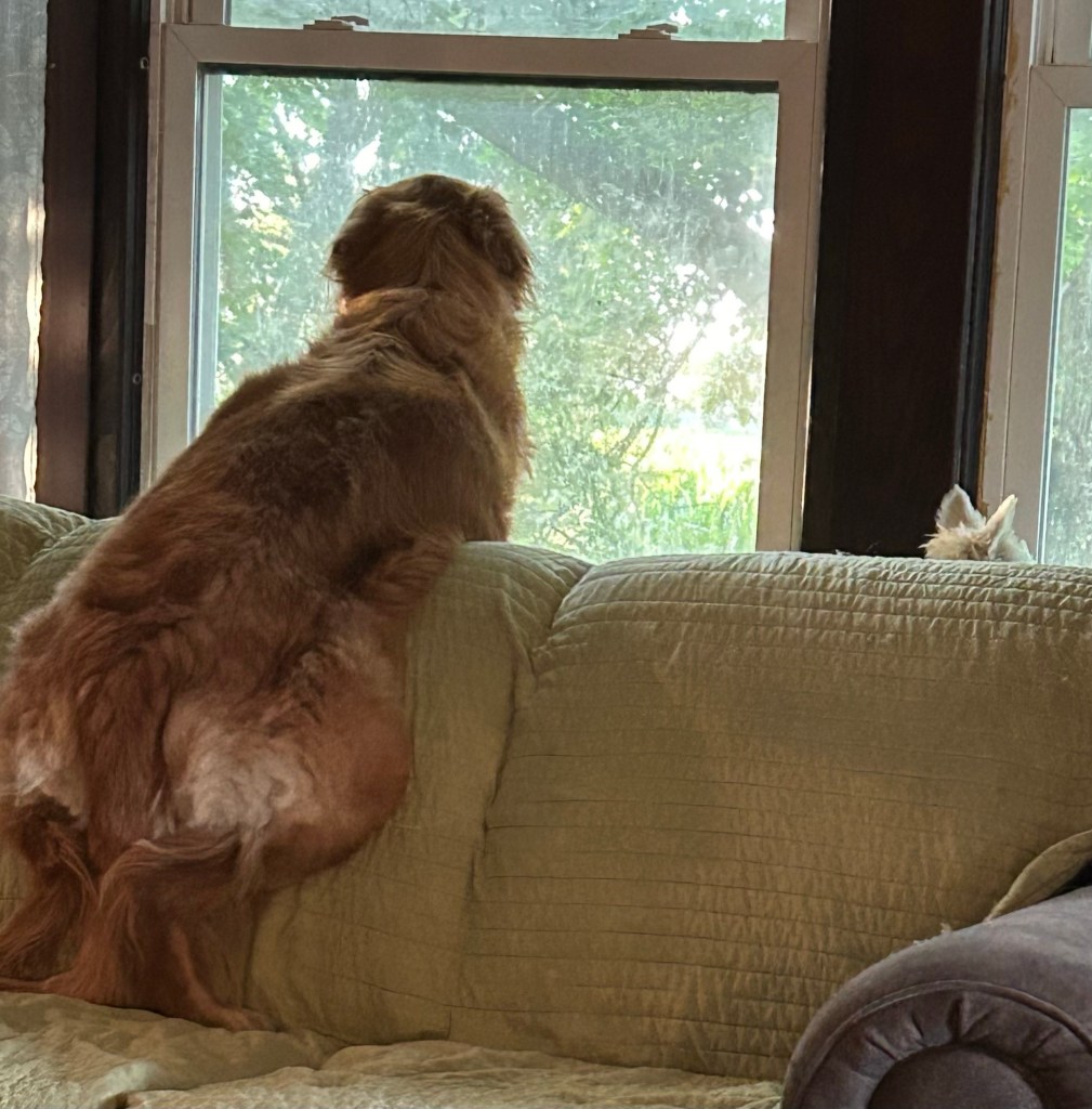 Okay all you bunnies, birds, insects, rustling leaves, blowing grass and waving stalks of corn you can’t get passed me so don’t even try! ~ Scruffy Pup