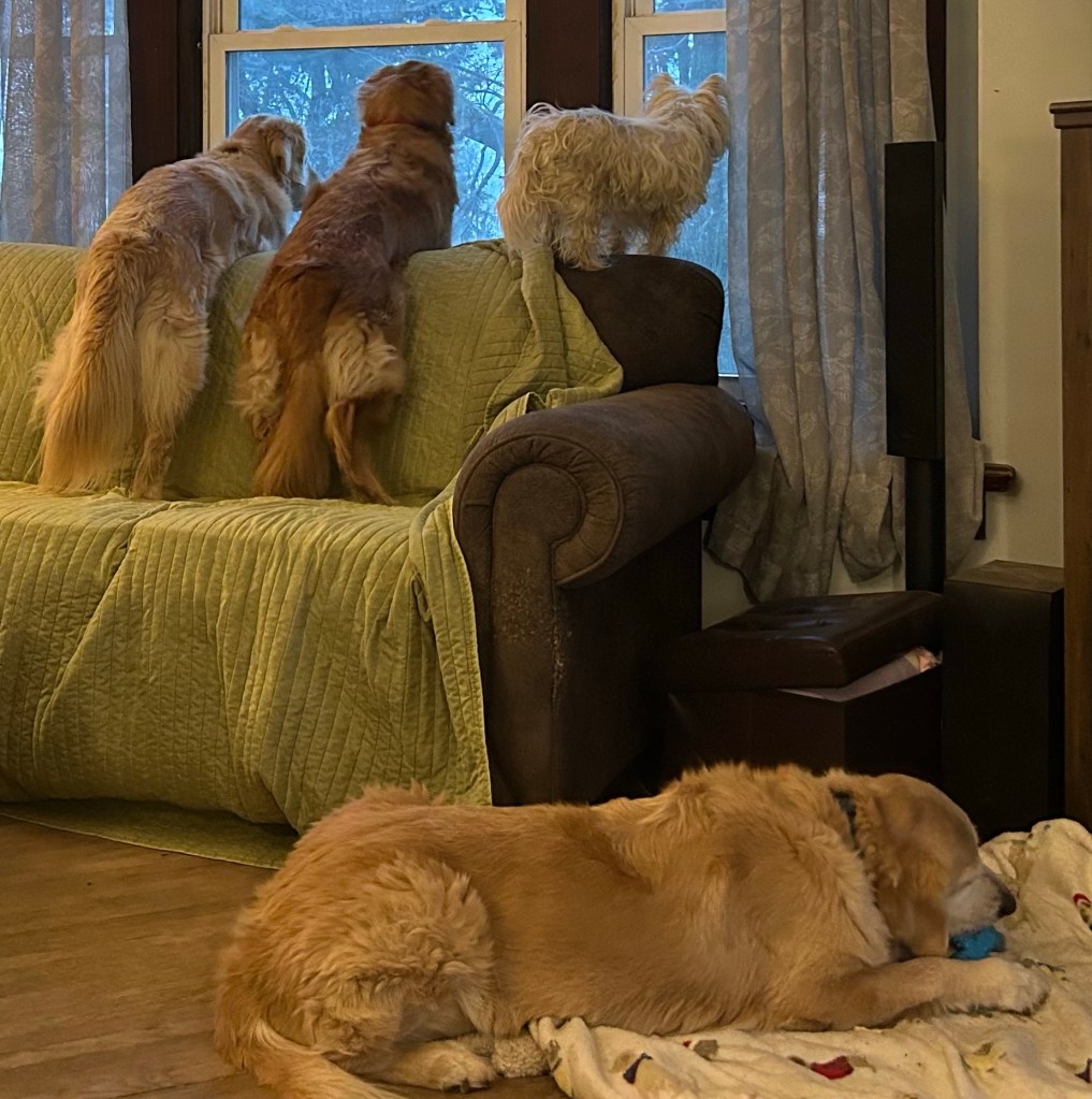 No matter the direction our eye is on it. Nothing gets by us! ~ Bea and Scruffy Pups