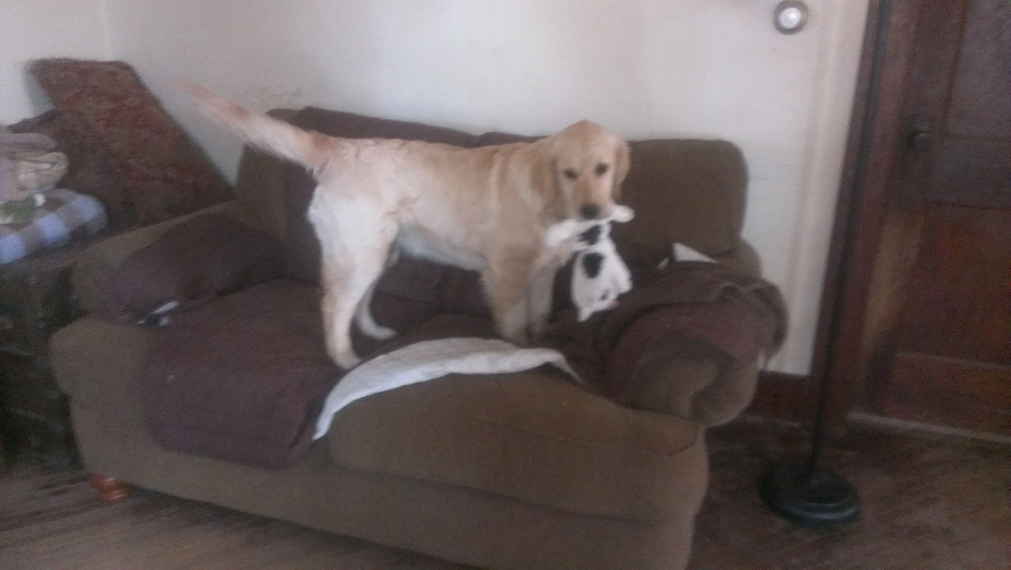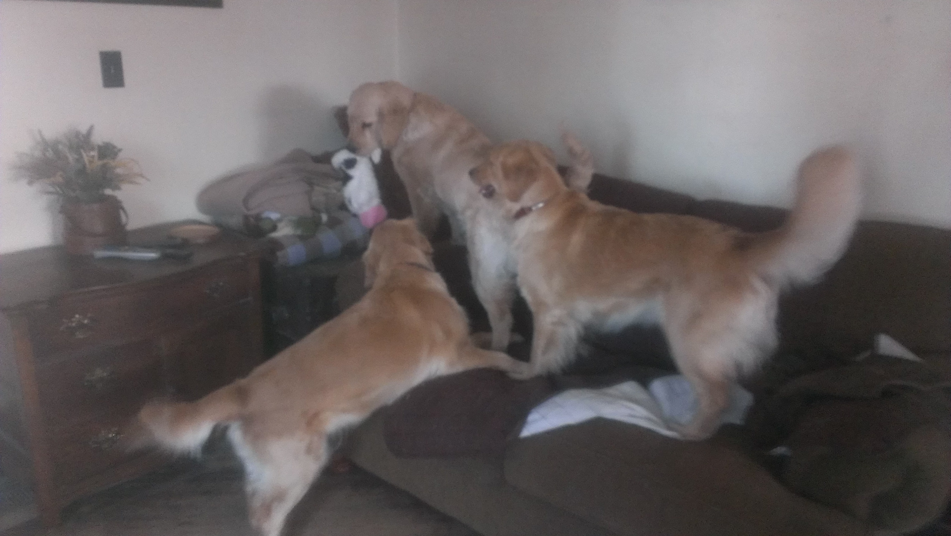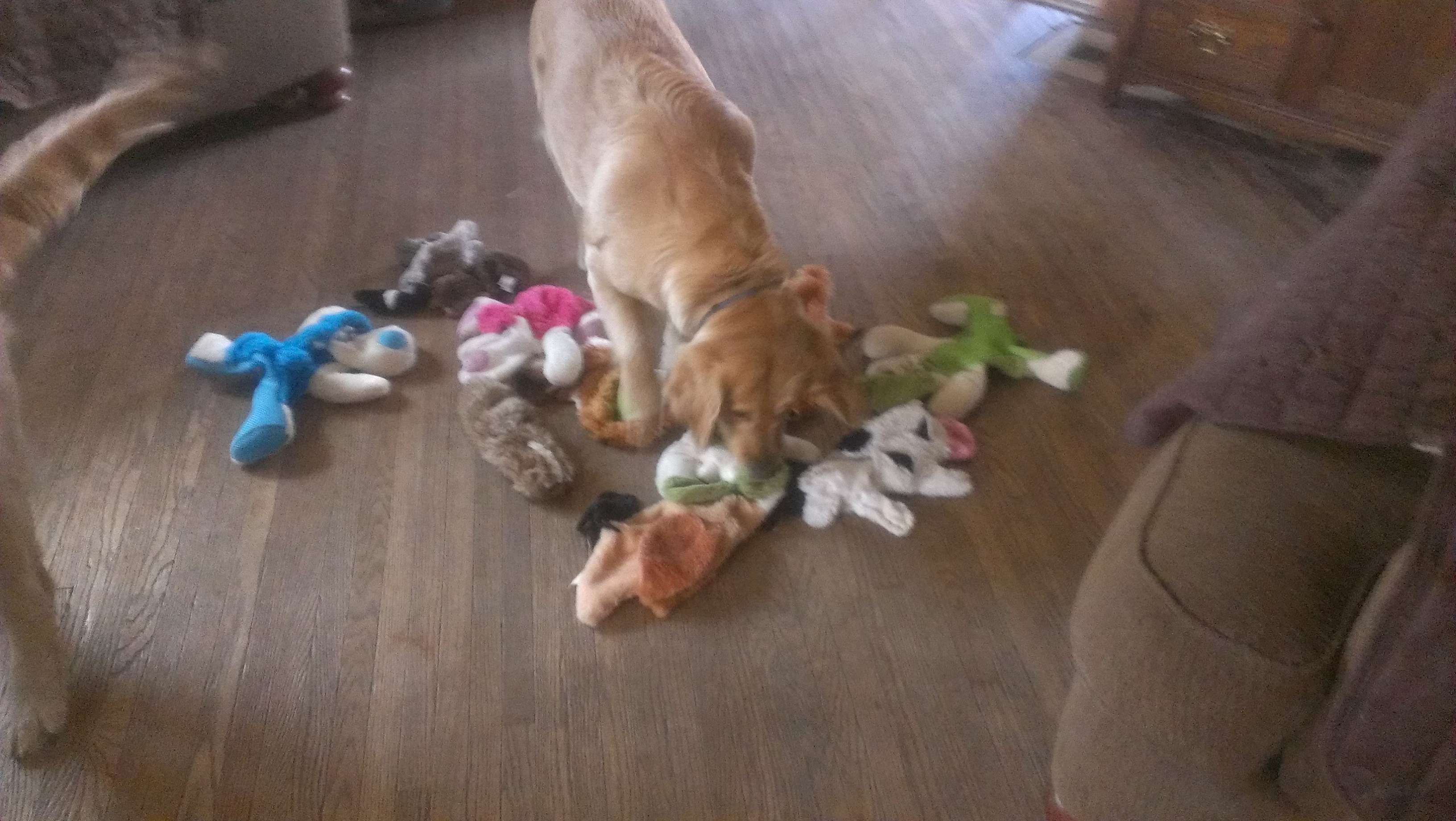 Our weekday wake up time is 5:00am but on weekends I like to try and sleep in a bit so last night I asked the pups if we could please sleep in until 6:00am. This morning at 5:30am I woke up to see Bess puppy standing over me with her stuffed toy in her mouth asking me if we could please, please get up. Since it was at least past 5:00am I agreed much to her delight.